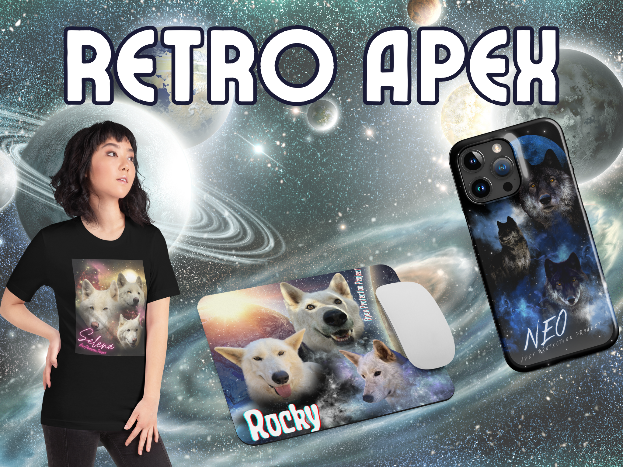 Inspired by the 80's space endeavors. The Apex Pack is exploring the stars and howling through their space travel in search of space wolves! Join the pack and and suit up with your fave pack member for some space travel!